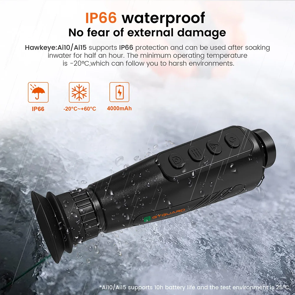 This AI-powered thermal monocular delivers reliable performance for hunting, camping, and outdoor surveillance in low-light or no-visibility conditions. Featuring AI super-resolution technology with a 384×288 display and a 256×192 thermal sensor, it provides clear, detailed thermal imaging for accurate target detection. The long-lasting 10-hour battery supports extended outdoor use, while the IP66-rated waterproof and dustproof design ensures durability in harsh environments. Compact and easy to carry, this thermal monocular is an essential tool for nighttime exploration, security monitoring, and outdoor adventures.
