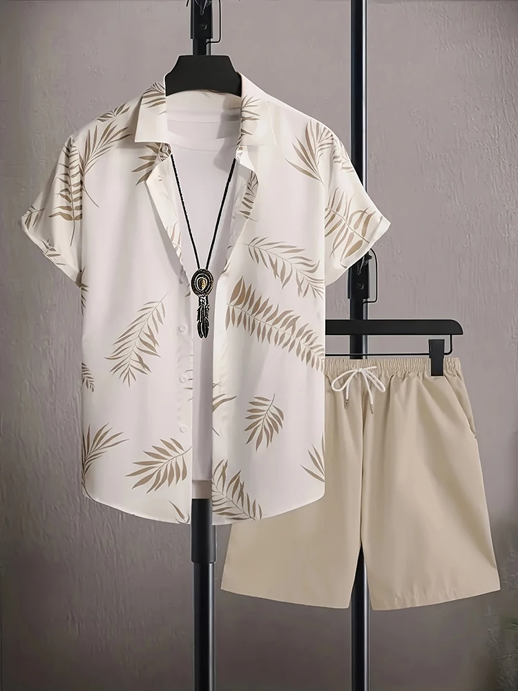 This men’s summer set combines a short sleeve shirt with matching beach shorts for a stylish and comfortable warm-weather outfit. Designed for casual outings, beach trips, or streetwear looks, the lightweight and breathable fabric ensures all-day comfort. The vibrant, Hawaiian-inspired shirt adds a relaxed, tropical vibe, while the coordinating shorts complete the effortless summer style. Perfect for vacations, outdoor activities, or daily wear, this set offers a fashionable, ready-to-go outfit for men who value both comfort and trend-forward style.