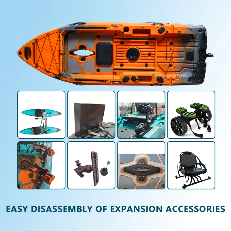 This modular inflatable fishing kayak offers versatile performance with electric and pedal-driven options, allowing you to choose effortless cruising or manual control on the water. Designed to be portable and lightweight, it’s easy to transport, inflate, and assemble, making it ideal for fishing trips, camping, and outdoor adventures. Built from durable materials with rugged accessories, this kayak provides excellent stability and reliability for anglers. Whether used as a fishing kayak or inflatable canoe, it delivers flexibility, comfort, and convenience for lakes, rivers, and calm coastal waters.
